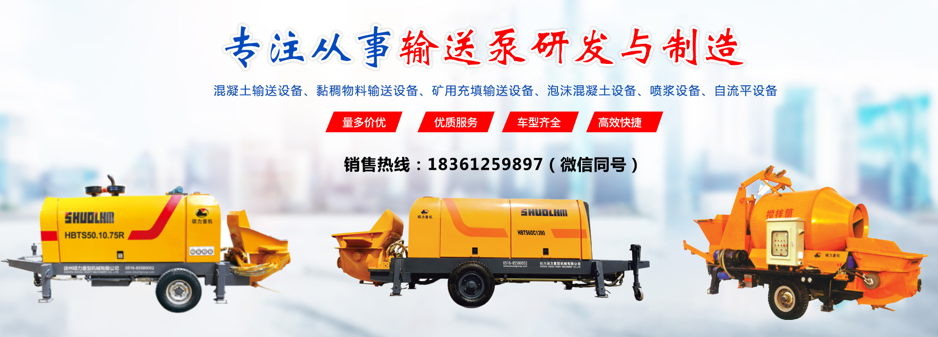 徐州碩力重型機(jī)械有限公司,座落于工程機(jī)械之都一一江蘇徐州,位于徐州高新技術(shù)產(chǎn)業(yè)開(kāi)發(fā)區(qū),一家20年專(zhuān)業(yè)致力于混凝土及黏稠物料輸送,煤礦機(jī)械、泡沫混凝土機(jī)械、混凝濕噴機(jī)械、充填泵的高新技術(shù)企業(yè),根基于中國(guó)的工程機(jī)械基地一一徐州,集機(jī)、電、液、一體化的人オ、技術(shù)優(yōu)勢(shì),與中國(guó)礦業(yè)大學(xué)東南大學(xué)簽署了長(zhǎng)期技術(shù)研發(fā)協(xié)議、不斷致力于高新技術(shù)機(jī)械產(chǎn)品的研發(fā)、制造,為國(guó)內(nèi)外客戶(hù)提供最高端的產(chǎn)品歷經(jīng)市場(chǎng)考驗(yàn),方顯品質(zhì)本色。碩力混凝設(shè)備,以其技術(shù)上的精湛性、質(zhì)量上的高可靠性和完善周到的全程售后服務(wù),建立了良好的品牌形象,備受廣大用戶(hù)信賴(lài),并遠(yuǎn)銷(xiāo)到國(guó)外在大江南北的經(jīng)濟(jì)建設(shè)中發(fā)揮了積極的作用,井圓滿(mǎn)完成了一系列重大工程的施工項(xiàng)目。
